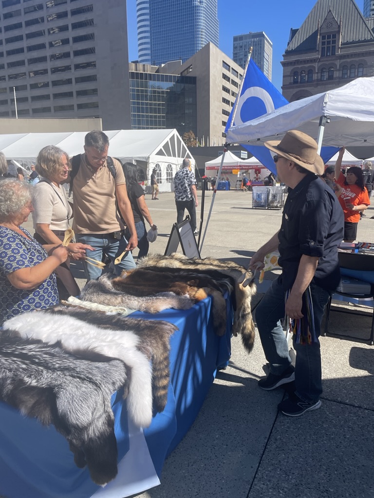 Our fur trade table was one of our most popular attractions, excited to feel the pelts of animals they would normally see from afar! We got to share our voyageur story, how the Métis were part of the fur trade.