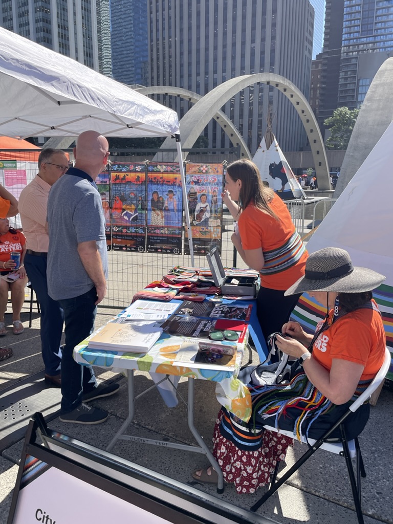 These were two busy days for the TYRMC, filled with learning and meeting community members interested in learning or sharing their stories. Our Métis flag stood proud and tall beside the tipi gifted to us by council fire to use at these community events